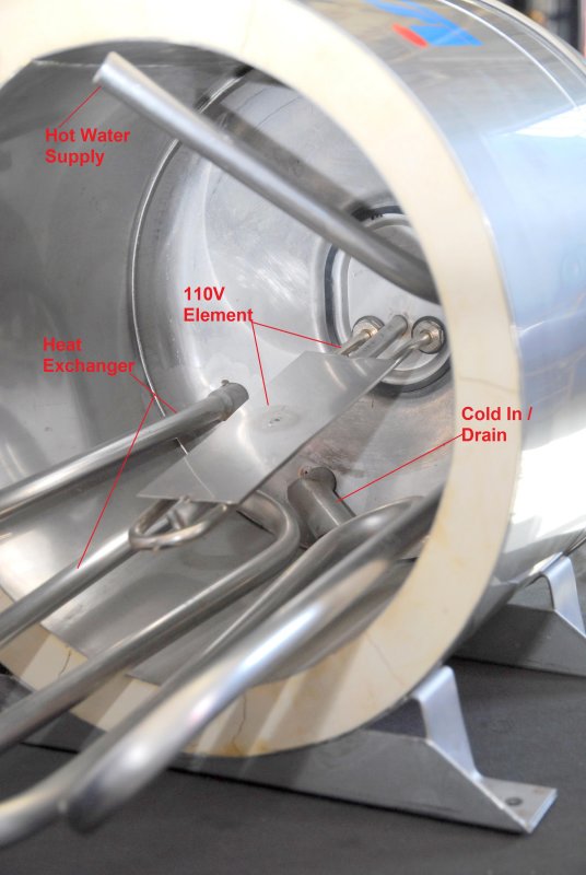 Isotemp stainless steel water heaters achieve the highest capacity by optimizing the position of the engine water heat exchanger as well as the electrical immersion heater.