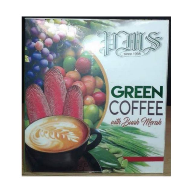 Pms green coffee with buah merah mix is made using high quality clinically tested and proven ingredients including green coffee extract non dairy creamer stevia extract red ginseng robusta coffee powder and spirulina.