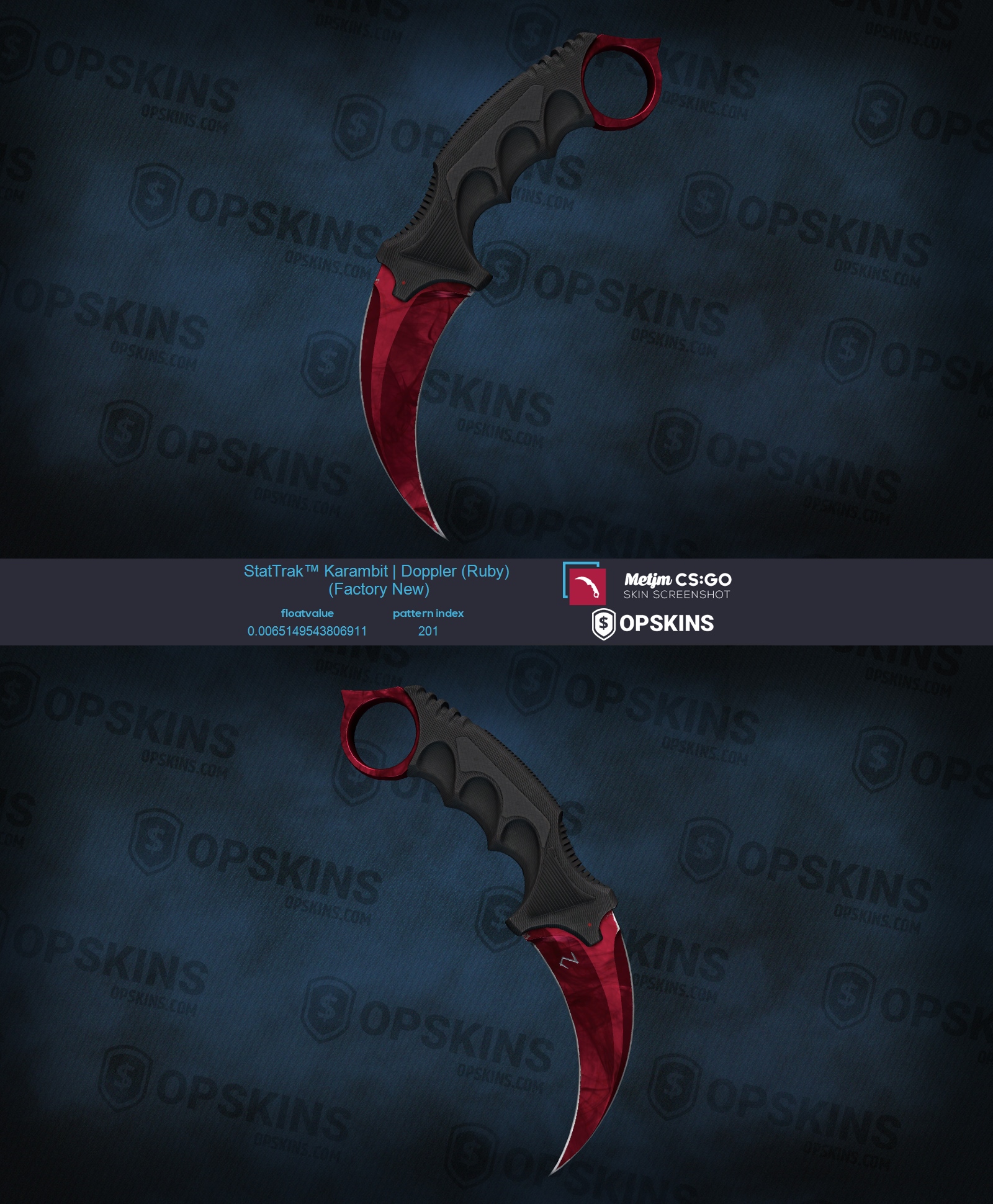 Float value of the skin ranges from 0 00 to 0 08 which makes karambit doppler ruby available only in factory new and minimal wear condition.